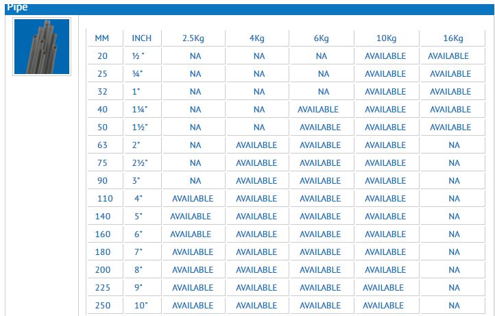 1) DIMENSIONS OF UNPLASTICISED PVC PIPES AS PER IS : 4985-2000
